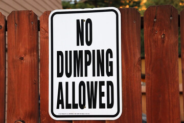 Closeup shot of a no dumping allowed sign on a wooden fence