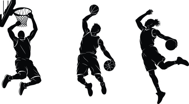 Dynamic silhouette of basketball player slam dunk