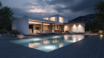 Urban cityscape at dusk with tranquil aesthetic for modern living