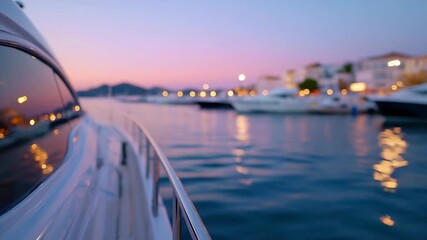 A stylish man in brown leather dress shoes walks confidently along a wooden boardwalk at dusk with blurred lights adding ambiance.