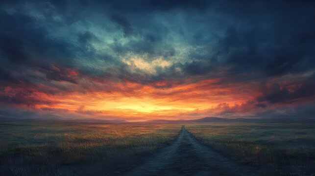 Beautiful orange and purple hues of the sky and clouds during sunset over the horizon