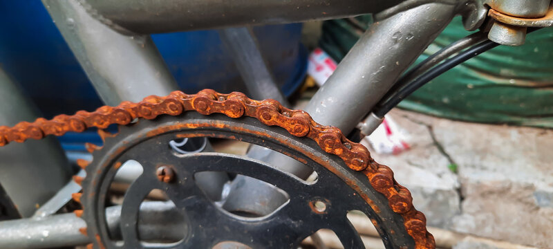 Kids bike is gathering dust in the closet. Dark garage with trash. Abandoned bicycle. Old wheel on the wall in the basement. Vintage rusty bike.