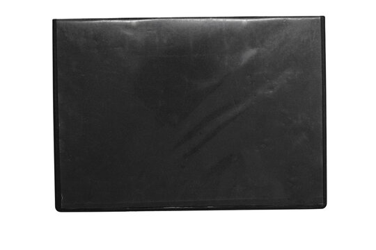 DVD disk video case on black background. Isolated game transparent mockup. Clean cover box template.