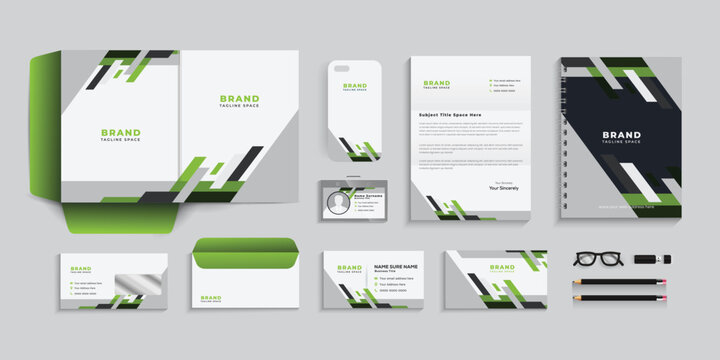 Stationery design set, with green and black color. eps