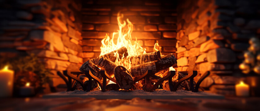 Close up of fireplace. Fire, flaming background. Heat concept. Generative ai
