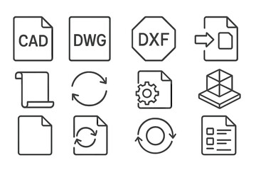 File format outline icon set. cad, dwg, dxf symbols, outline design collection