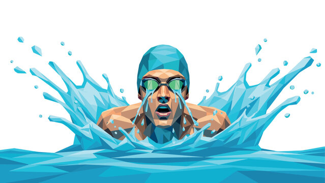 Dynamic low poly swimmer performing butterfly stroke in vibrant aqua hues