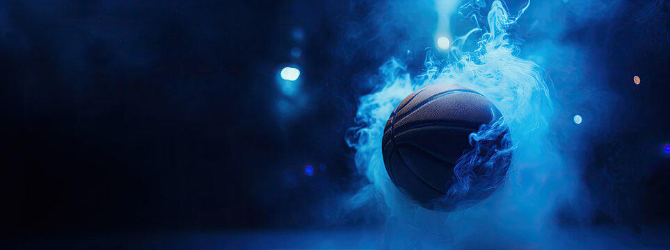 Energetic basketball arena filled with vibrant crowd. Fans in motion, excited before game. Banner area empty. Hardwood court ready for action. Indoor sport venue. Thrilling sports event. Athletic