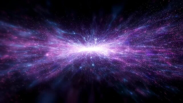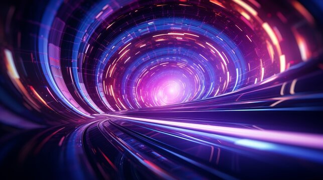 Abstract purple and blue light tunnel moving through space. Blur vortex effect and optic visual acceleration animation.