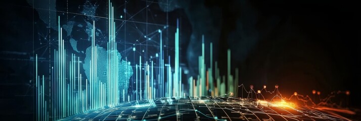 E-commerce Metrics Futuristic Background for Online Retail Analytics. Dynamic data visualization, charts, and graphs presenting insights into digital commerce trends and performance