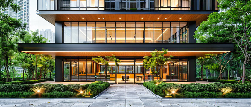 Sleek Urban Office Building with Modern Facade and Contemporary Design, Dynamic City Architecture