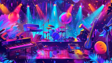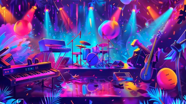 Vibrant Birthday Background with Music Festival Theme for Energetic Celebrations and Designs