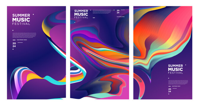 Music poster design background vector set. Electro Sound Cover template with vibrant abstract gradient geometric shape and line wave. Ideal design for social media, flyer, party, music festival, club.