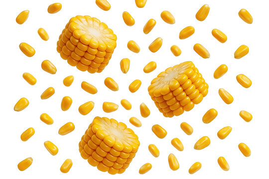 Fresh Corn Kernels and Slices Falling in Dynamic Motion, Capturing the Essence of a Bountiful Harvest
