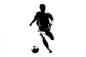 Dramatic black silhouette of a soccer player in action, running with the ball.