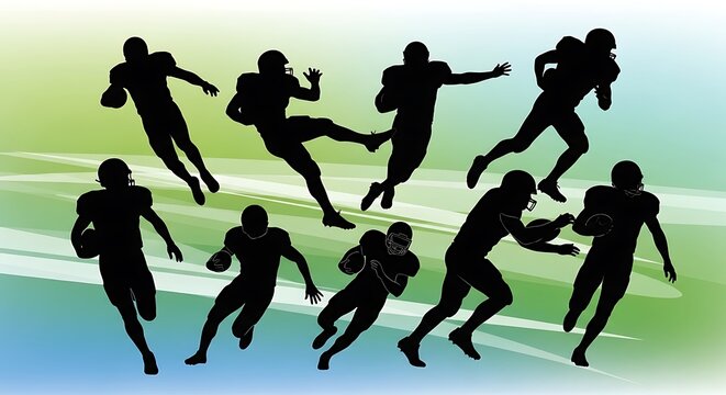 American Football Players in Action Silhouettes.