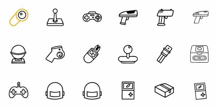 Dynamic collection of retro gaming icons featuring joysticks, controllers, and classic game consoles for digital projects and nostalgic designs