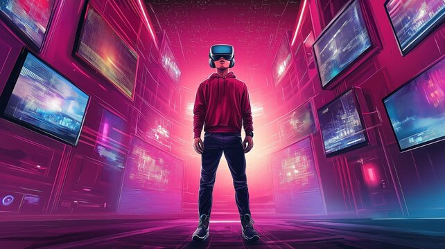 Neon tunnel with vibrant lights signifying futuristic triumph