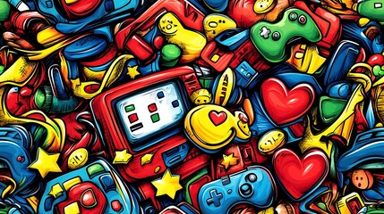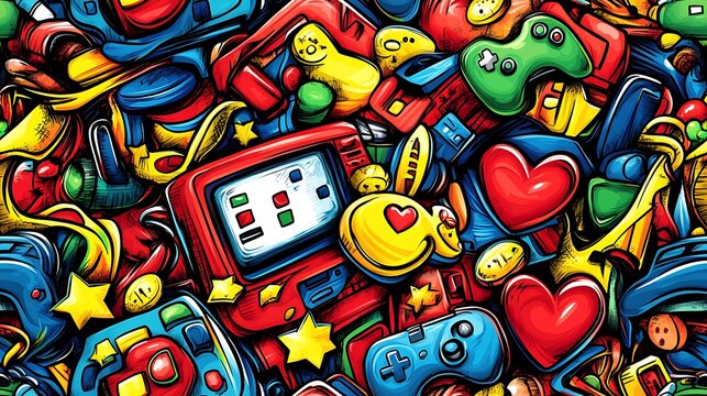 An artistic representation of gaming controllers surrounded by colorful glowing textures and sparkling lights, creating a vibrant atmosphere.