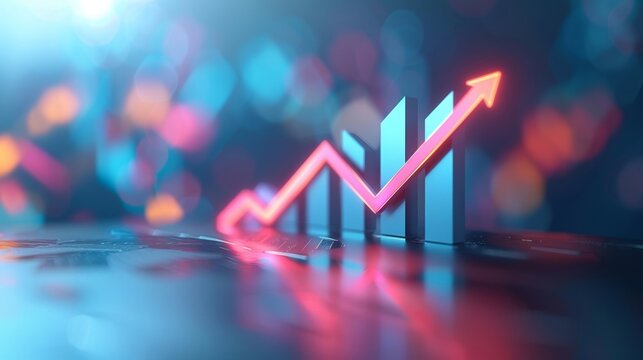 A dynamic  chart presenting growth in investments, perfect for business presentations, featuring a moving arrow indicating upward trends.