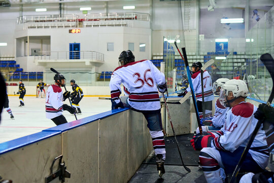 Dynamic Ice Hockey Player Preparing On Rink Templates