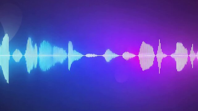 A vibrant audio wave illustration with dynamic purple and blue hues. The image embodies rhythm, beats and voice recording concepts.