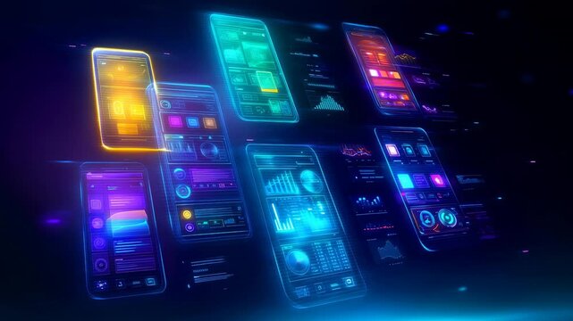 Glowing blue poca animated digital hud interface on black background with dynamic elements