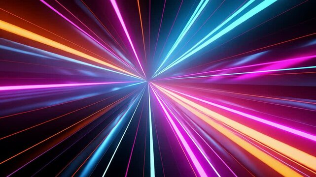 Abstract Neon Rays: A dynamic display of neon light streaks radiating outward from a central point, creating a vibrant and energetic composition.