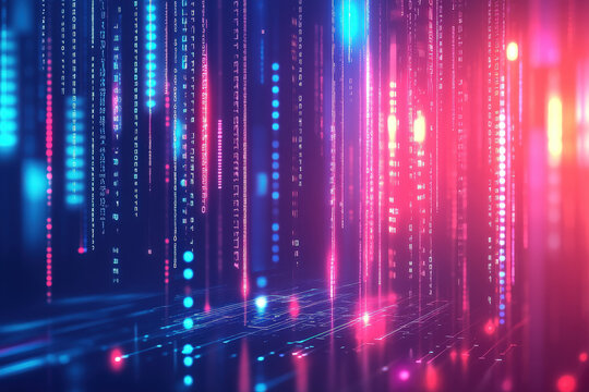 Neon tunnel with vibrant lights signifying futuristic triumph