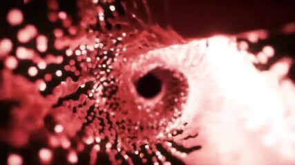 Abstract red vortex with swirling particles, a dynamic and energetic science illustration.