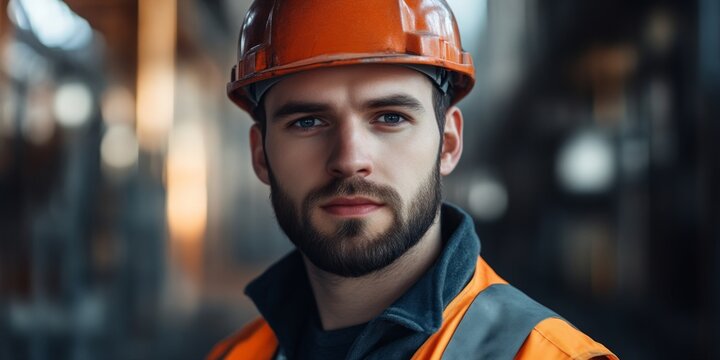A determined worker in safety gear, focused on his task in an industrial setting, embodying professionalism and dedication to his craft amidst a dynamic environment.
