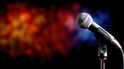 Captivating solo male vocalist performing live on stage with dynamic microphone male singer passionately performing with a microphone on stage.