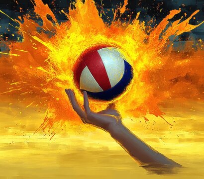 Volleyball power strike with radiating blast effect, artistic rendering