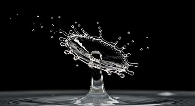 A captivating macro shot of a water drop collision, showcasing the beauty of fluid dynamics and the intricate patterns formed during the impact