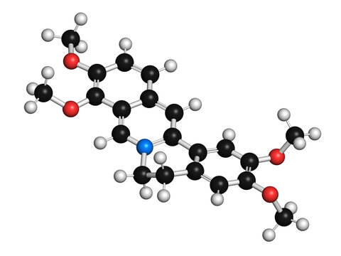 Palmatine herbal alkaloid molecule, illustration