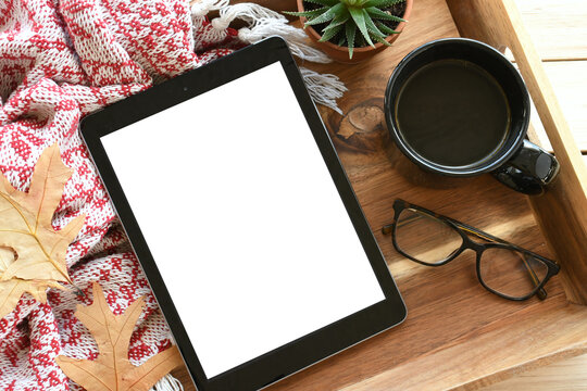 Focused businessman navigating tablet for e-book promotion