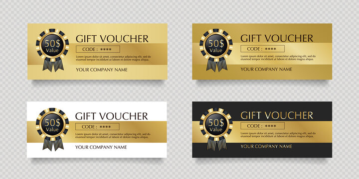 4色のカードとロゼットのラベルのギフト券のベクターイラストセット