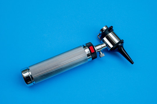 Medical Equipment Otoscope on blue background