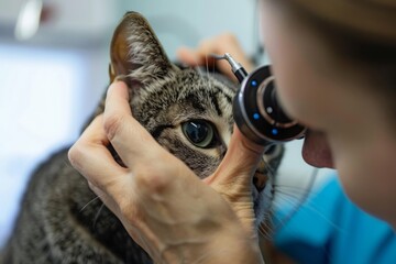 veterinarian using an otoscope to examine a cat%27s ears