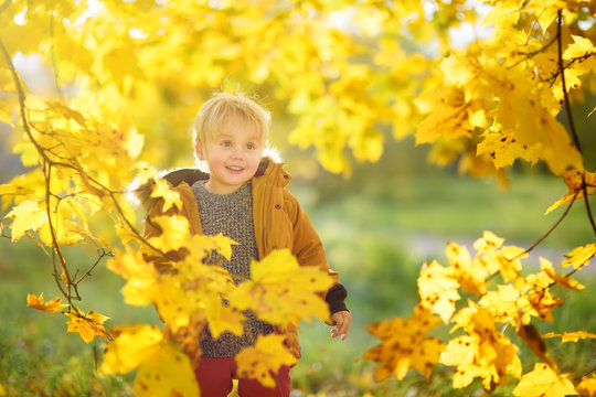 Joyful woman relaxing in autumn leaves welcoming fall season