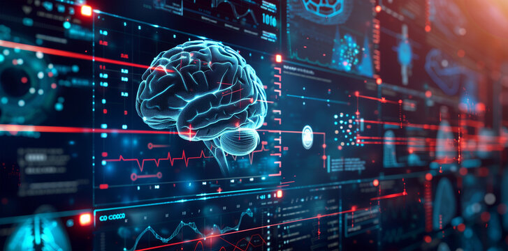 AI-powered diagnostic system visualizing complex medical imaging and providing predictive analytics for early disease detection