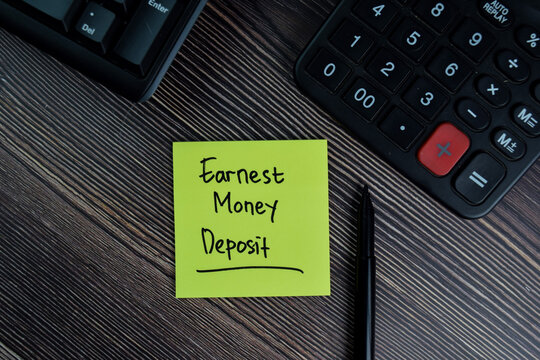 Earnest Money Deposit write on sticky notes isolated on office desk.