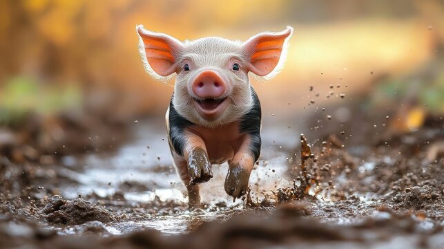 A closeup shot of a hamster amidst a field of autumn leaves, with a backdrop of glowing pumpkins. The hamster is positioned in the foreground, with its ears perked up.