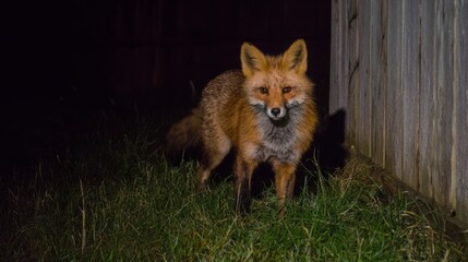 coop. Fox approaching a chicken coop in moonlight, ears perked alertly. wildlife magazines, conservation campaigns, designed for eco-tourism storytelling and wildlife conservation campaigns.