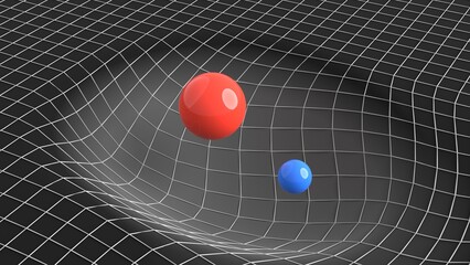 spacetime curvature 3d representation, solar system gravity force illustration that can represent gravity waves, relativity or the lhc experiment