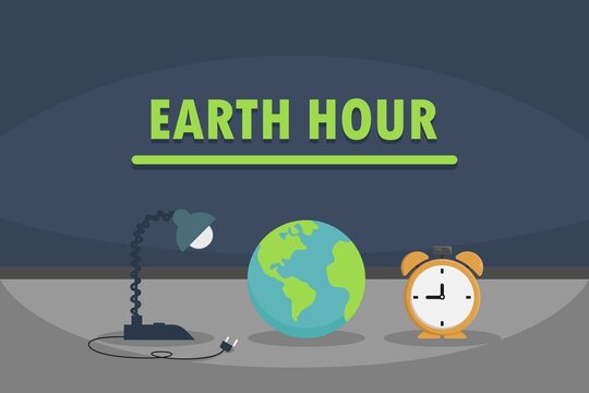 Earth hour. Turn off lights to save energy. Global environment conservation