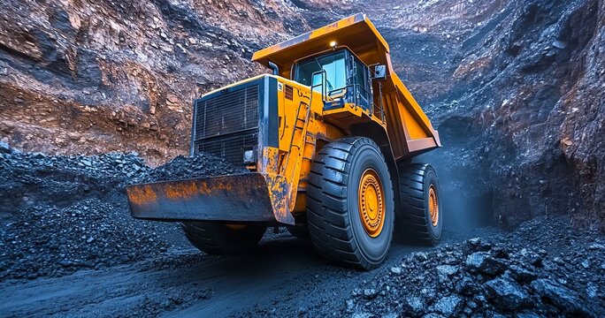 Powerful excavator at a construction site against a blue cloudy sky. Earthmoving equipment for construction. Development and movement of soil.