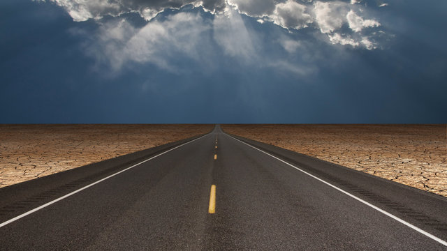 Digital earth globe planet cyberspace on a foggy asphalt road animation background. Seamless looping.