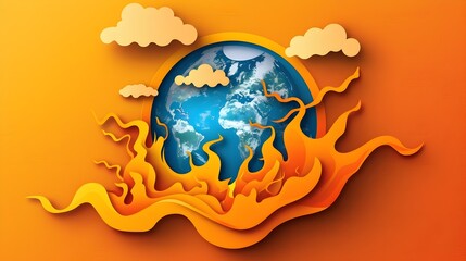 Fiery Globe Symbolizing the Climate Crisis in Paper Cut Style
