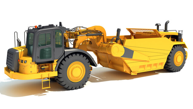 Tractor Scraper heavy machinery 3D rendering on white background